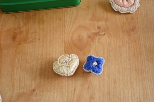 本屋さんで見つけたこの本。 小林彩乃さん著の『シックな色の糸とビーズで、花の刺繍ブローチ』 で、お花の刺繍をしました。 オーガンジーに刺しゅう出来るの?と興味津々。 ビーズの刺繍もしてみたかった。 そして、このお花たちがとってもかわいい。 作っ…